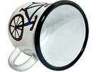 Emailletasse mit schönem Velomotiv. Die ideale Geschenkidee für alle Velofans oder für all die, die sich beim morgendlichen Kaffee bereits auf die nächste Tour einstimmen möchten. So gelingt der Start in den Tag. Standardgrösse mit 300ml Volumen.