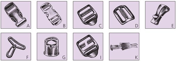 - Typ C: LL-Schliesse (Klemmschnalle) zum Durchschlaufen, Annähen