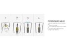 Patrone bis zum Anschlag aufschrauben, damit Membran durchstochen wird. Durch Zurückdrehen der Patrone lässt sich der CO2-Strom einfach dosieren.