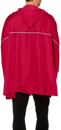 Der Poncho ist aus wasser- und winddichtem Material gefertigt und verfügt über eine praktische Front- bzw. Packtasche, in der der Poncho verstaut werden kann, wenn er nicht benötigt wird. Zudem sind zwei seitliche Eingriffe vorhanden, die es ermöglichen, schnell und einfach auf Taschen oder Gegenstände darunter zuzugreifen. Die Handschlaufen sorgen dafür, dass der Poncho auch bei starkem Wind an Ort und Stelle bleibt. Zusätzlich sind Reflektoren angebracht, die die Sichtbarkeit bei schlechten Lichtverhältnissen verbessern. Das Material der Regenponchos ist Bluesign-zertifiziert und PFC-frei ausgerüstet. Der Regenponcho ist ein Green Shape-Produkt, das bedeutet, dass er nach den Nachhaltigkeits-Standards von Vaude gefertigt wurde.
