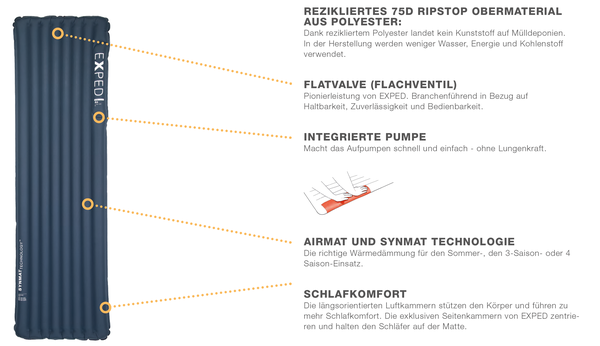 Die VERSA 1R ist das Nachfolgemodell der EXPED Airmat UL. Sie zeigt sich als design- und gewichtsoptimiertes Einstiegsmodell, das mit 5cm dicken, längsorientierten Luftkissen deinen Körper gut stützt. (CN)